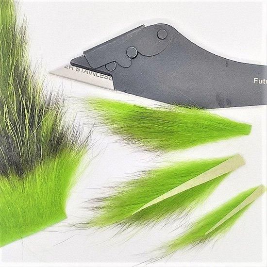 スキンは薄くて強く適度の張りで絡みにくいです。長くて光沢のあるガードヘアー。適度の柔らかさとボリュームのアンダーヘアー。 最高の泳ぎを演出してくれるマテリアルです。カットには、FutureFlyのゾンカーツールと マルチナイフがお勧めです。