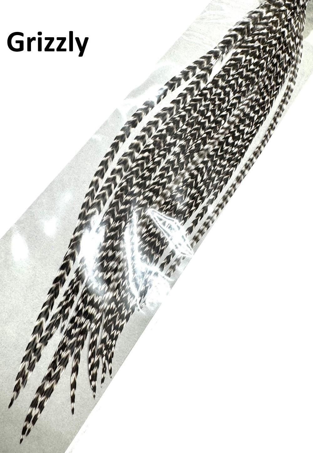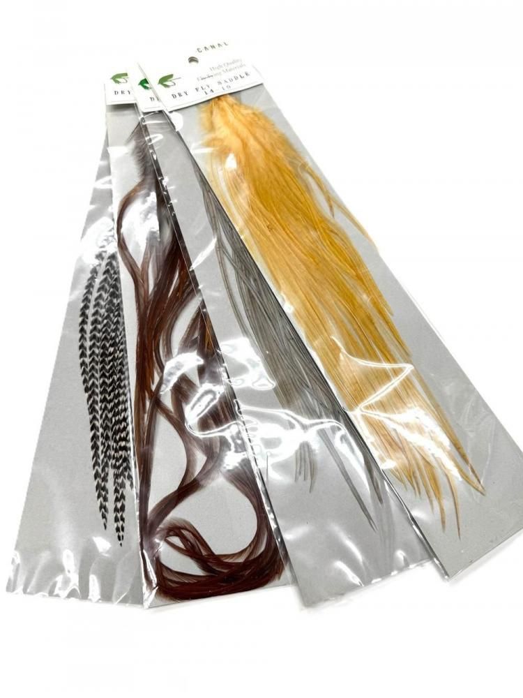 キーオ・コックサドルハックルのグリズリーベース、ダイドカラーハックルです。ドライフライは、 #8〜#14位のサイズが巻けます。 ロングテール・チューブフライのテールやイントルーダーのウィングにも適材です。