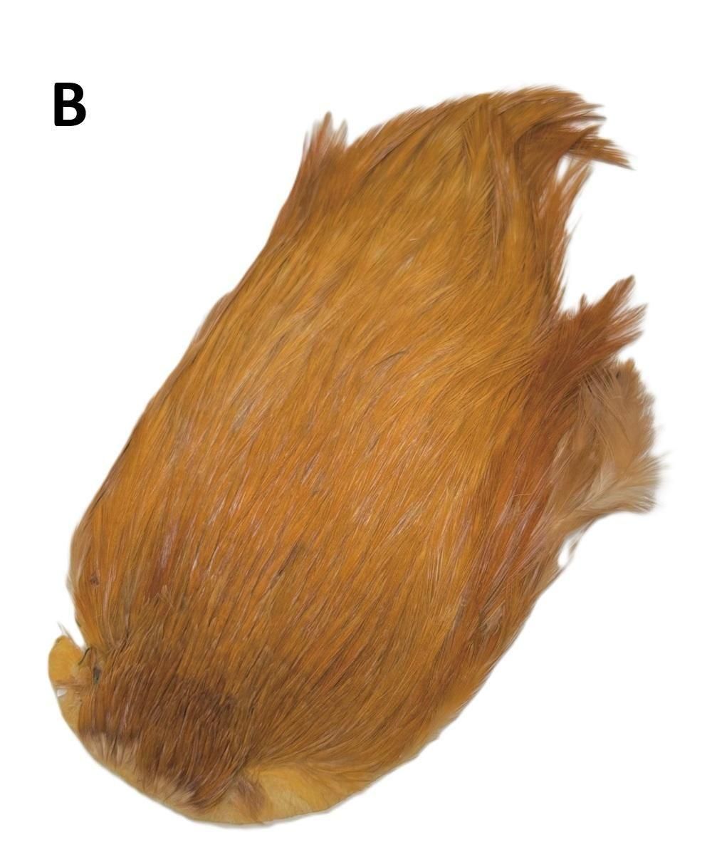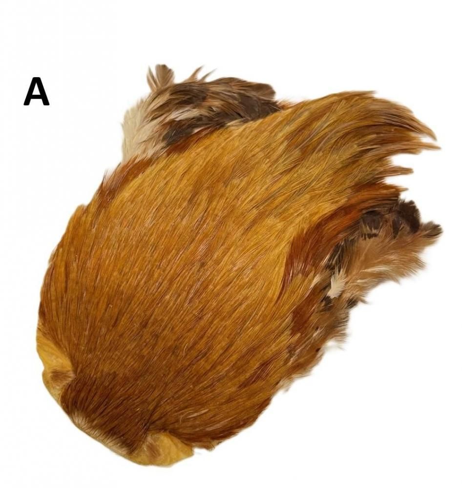 ライトジンジャーよりももう少し濃い色、すなわち薄茶色のハックルをジンジャーと言います。ライトジンジャーとジンジャー、また、ジンジャーと ライトレッドの境目は、色の濃淡の問題ですから極めて曖昧です。 ウエットフライ、ローウォーターやストリーマーのスロート。#10〜#14のドライフライを巻くことができます。