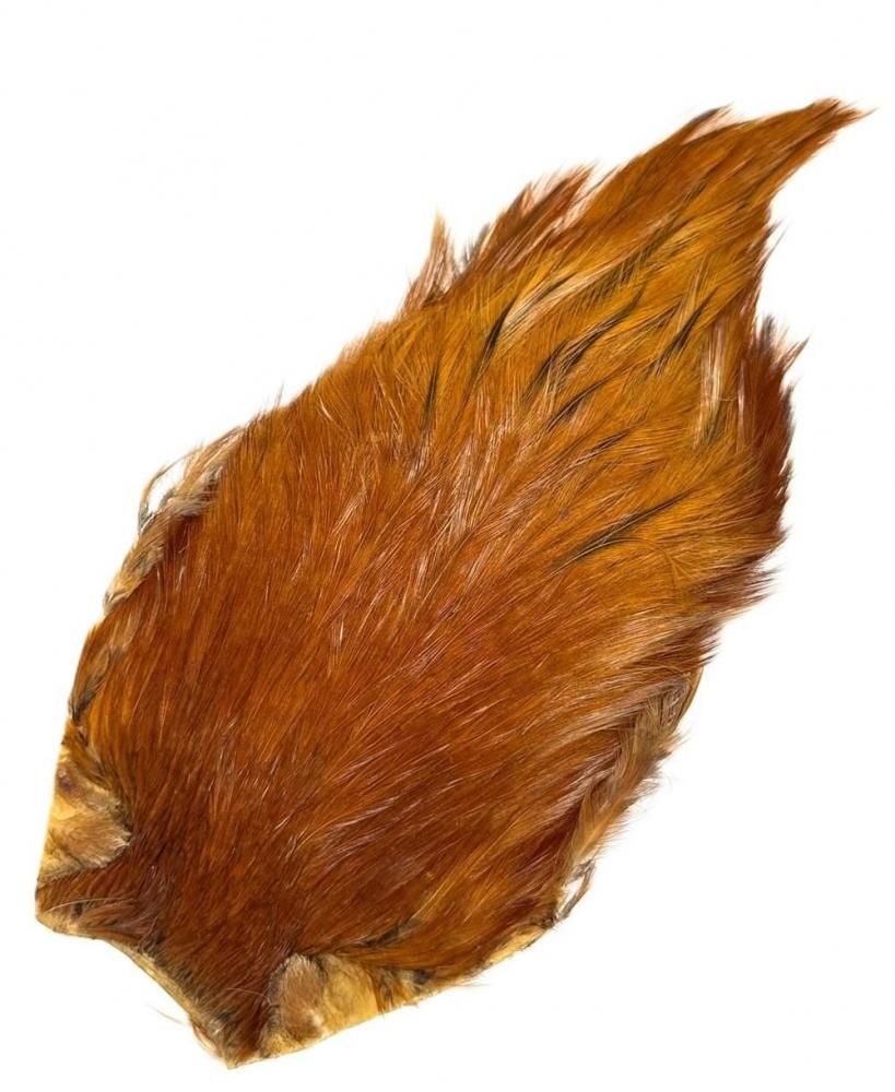 インドハックルでは、ナチュラルで赤みがかった茶色を「レッド」と言います。染色された赤は、ダイドレッドまたはスカーレットと言います。 インドハックルでは一番多くある色で、品質も安定して優れています。ジンジャーのやや濃くなったものをライトレッドと言い、 ダークジンジャーとは同じものです。#10以上のウエットフライ、#10〜#14のドライフライを巻くことができます。