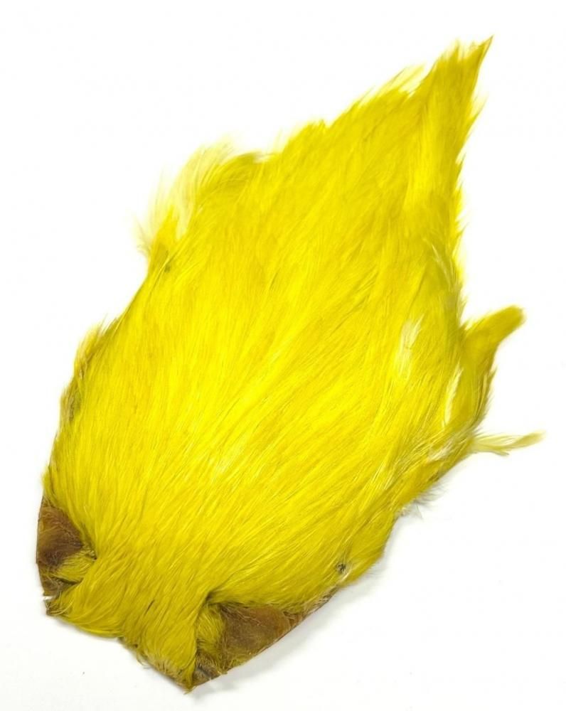 クリームのケープを黄色に染めてあります。様々な、ウエットやサーモンフライ、ストリーマーに使用します。 特にメイフライを模した多くのウエットフライに重要です。ドライフライでは、テレストリアルやバスフライに有効です。