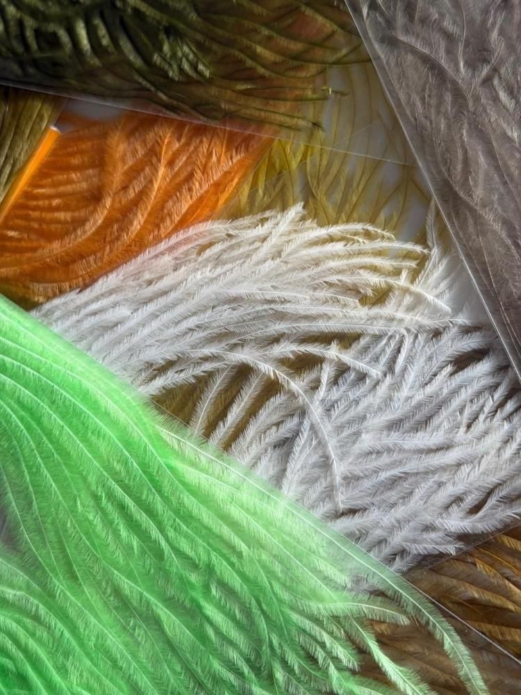 オストリッチのウィングフェザーです。フリューが特別長く、ストークが細くクロスオストリッチが綺麗に巻けます。 ハールの長さ 13〜16cm / 5〜6cmカット。