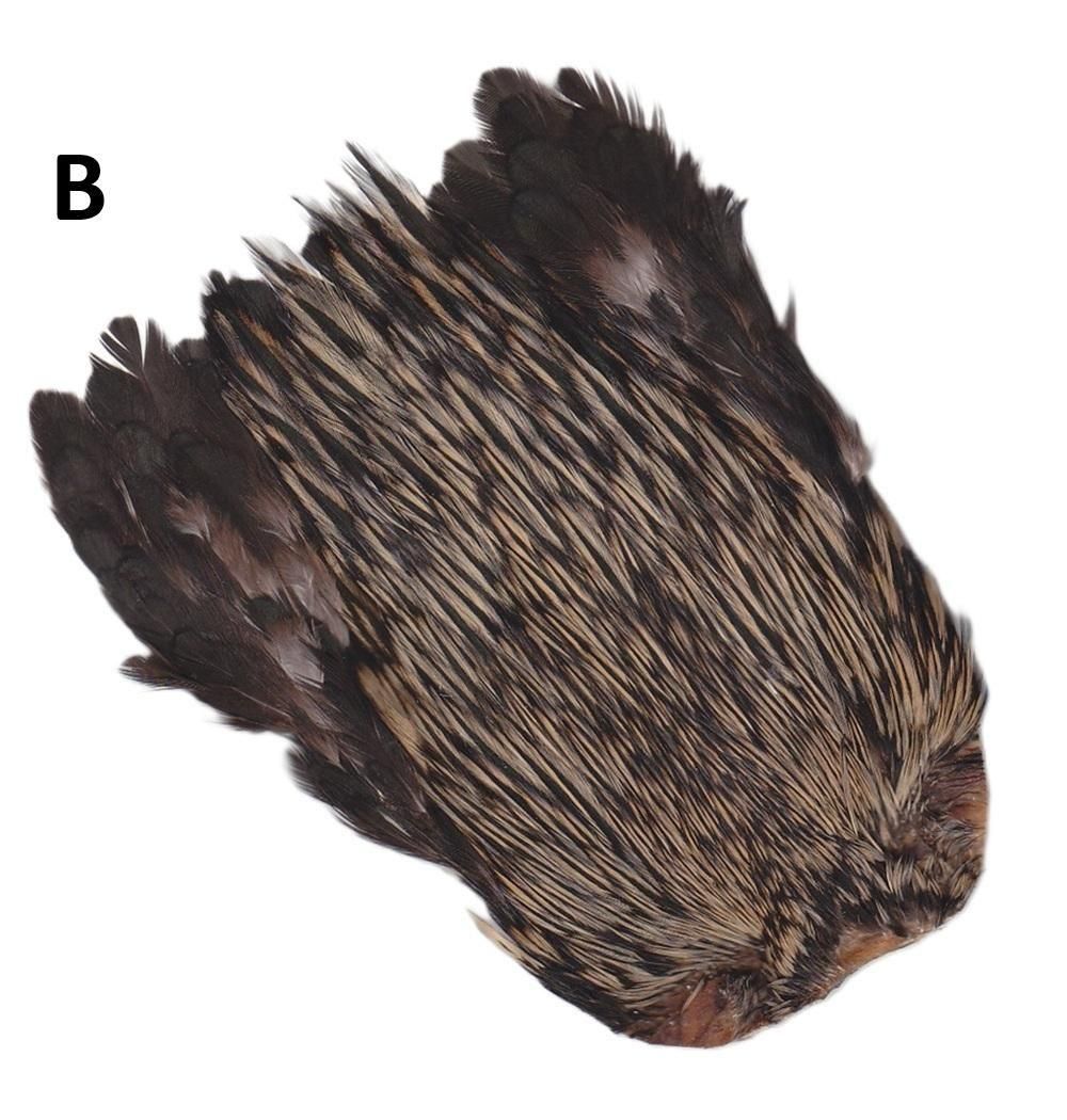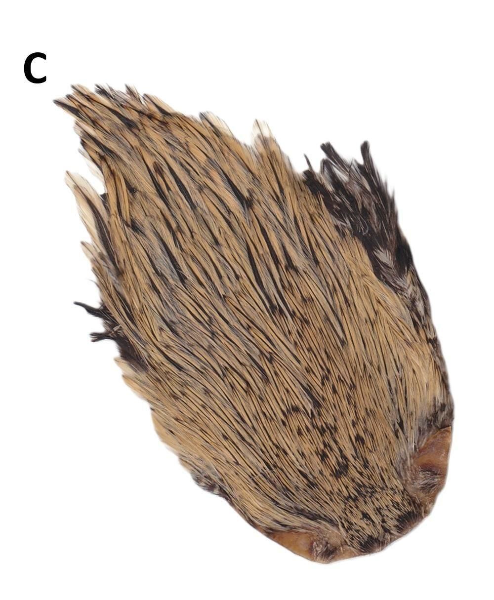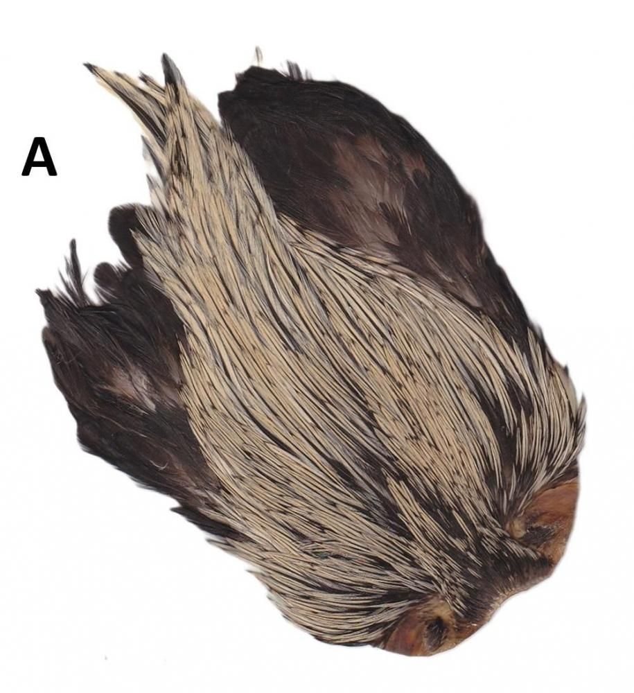 インド産のコックハックルは、ストークが細くて巻きやすく、適度な張りと艶のあるファイバーが特徴です。 ファイバーは長く、ウェット、ローウォーター・フライやストリーマーに最適です。ドライフライには、#8〜#12のハックルとテールが採れます。 フェザー(ストーク)の長さが短いので、厚めにハックリングしたい場合は複数本巻いてください。